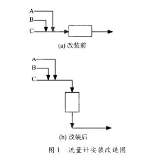 流量計輸出波動是出現(xiàn)比率*多的故障類型,這種情況大多是由于儀表安裝不當(dāng)或工藝流體影響造成的。流量計安裝改造圖如圖1所示。