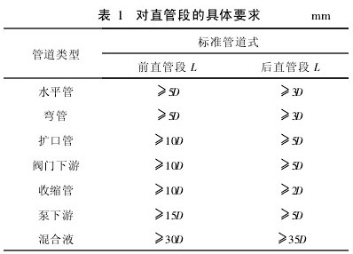 流體在方向、管徑以及閥門(mén)開(kāi)度變化時(shí),會(huì)產(chǎn)生渦流和流場(chǎng)畸變,這樣會(huì)對(duì)傳感器電*的測(cè)量產(chǎn)生影響,從而影響儀表的精度。所以要盡可能地離開(kāi)彎管、手閥、調(diào)節(jié)閥等部件一定距離,直管段的具體要求見(jiàn)表1。表中,D表示管道通徑,L表示傳感器到閥門(mén)或彎頭等部件的距離。