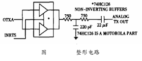 如圖4所示,緩沖器74HC126的作用是使方波的上升沿和下降沿趨于平緩,使信號(hào)滿足HART物理層規(guī)范所要求的信號(hào)波形上升沿和下沿的時(shí)要求,因?yàn)檩^平緩的上升沿和下降沿時(shí)間可以降低與其它網(wǎng)絡(luò)間的串?dāng)_。