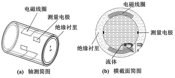 電容式氯化鐵流量計(jì)從根本上解決了電*表面附著、腐蝕、摩擦等問題,其電*與被測(cè)流體間有絕緣襯里隔離,或者直接采用絕緣測(cè)量管。電*置于測(cè)量管外面或鑲嵌于測(cè)量管內(nèi)部。嵌人式氯化鐵流量計(jì)和外貼式氯化鐵流量計(jì)的結(jié)構(gòu)如圖2所示。
