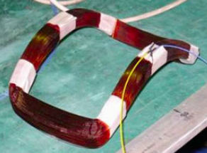 由此可見,給水流量計正常運行需要有穩(wěn)定的磁場,而磁場正是靠傳感器線圈內(nèi)的 勵磁電流來產(chǎn)生的。勵磁線圈如圖2所示。