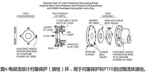 圖4.醋酸流量計襯里保護(hù)(接地)環(huán),用于襯里保護(hù)和PTFE的過程流體接地。