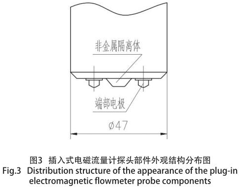 通過大量的試驗,對探頭端部外型結(jié)構(gòu)亦采用特殊設(shè)計,從而消除兩個電*之間的擾流現(xiàn)象,同時亦消除因通電產(chǎn)生磁場,導致兩個電*吸附介質(zhì)中的鐵屑而影響測量精度和死區(qū)效應(yīng),增強了輸出信號的穩(wěn)定性,從而提高傳感器準確度和抗干擾性。通過結(jié)構(gòu)的優(yōu)化設(shè)計,使用壽命更長,鹽酸流量表探頭局部,如圖 3 所示。