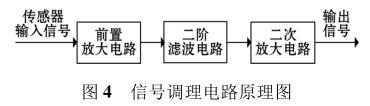 由于傳感器線圈輸出的電動(dòng)勢信號非常微弱,干擾成分復(fù)雜,信號幅值受磁場變動(dòng)影響較大,不能滿足 ADC 采用的要求,因此需要對此信號進(jìn)行調(diào)理。