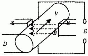 根據(jù)法拉*電磁感應(yīng)定律,即導電液體在磁場中切割磁力線運動時,導體中產(chǎn)生感應(yīng)電勢(見圖1),其感應(yīng)電勢的大小與磁感應(yīng)強度、流體做切割磁力線強度等因素成正比。