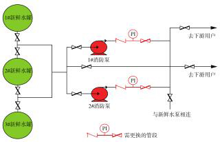 (4)新鮮水流量減少,多功能水泵控制閥緩慢關閉,停止給下游供水。
