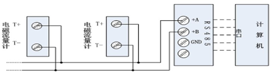 手操器與法蘭式電磁流量計(jì)連接如下圖所示: