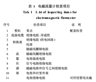 若能證明測(cè)量要素B仍保持在原校準(zhǔn)流量時(shí)的允差范圍內(nèi),且證明沒(méi)有影響流量信號(hào)的其他不利因素(如信號(hào)回路絕緣電阻下降),就可確認(rèn)所測(cè)流量值仍保持原有性能的值。為證明B維持原值,應(yīng)檢驗(yàn)勵(lì)磁線圈電阻/絕緣以及勵(lì)磁電流,評(píng)估B;檢查電*信號(hào)電路絕緣良好,證明流量信號(hào)沒(méi)有被分流;測(cè)量電*接液電阻,評(píng)估電*表面狀況是否妨礙正常測(cè)量;檢查測(cè)量各部件絕緣電阻以判斷零部件劣化程度;再以模擬信號(hào)器及其他通用儀器檢查轉(zhuǎn)換器完好性。這些檢查項(xiàng)目如表1所示,文獻(xiàn)有詳細(xì)的論述。