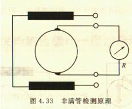 非滿(mǎn)管檢測(cè)也是基于電導(dǎo)率檢側(cè)的方法。在圖4.33所示的電磁流量傳感器中,增加了一個(gè)(或一對(duì))非滿(mǎn)管檢測(cè)電*。當(dāng)導(dǎo)管內(nèi)液體滿(mǎn)管時(shí),頂部電*與其他電*之間的電阻值很??;而當(dāng)存在非滿(mǎn)管情況時(shí),頂部電*與導(dǎo)電液體之間有氣體阻隔,所以電*電阻顯著增大,從而做出非滿(mǎn)管判斷。