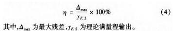 本文采用*小二乘法進行線性度評定,即擬合直線為*小二乘直線。*小二乘直線保證了傳感器至*輸出的平均值對它的偏差的平方和為*小,即可以保證擬合直線得到的結果與實測結果之間的偏差很小,更具可靠性。根據(jù)定義,線性度即是校準曲線對這條*小二乘擬合直線的偏離程度。