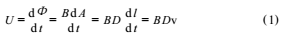 其中,B為磁感應(yīng)強(qiáng)度,A為磁通量變化面積,D為導(dǎo)體長度,dl為被測介質(zhì)運(yùn)動的距離,v為被測介質(zhì)運(yùn)動的速度,U為感應(yīng)電動勢。
