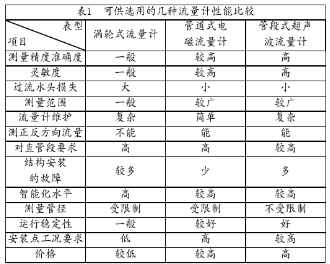 幾種可以進行比較的流量計的性能特點,見表1。